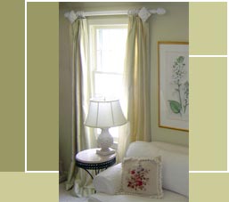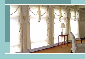 Window treatments by Let's Talk Interiors are custom designed to fit your style, color, and decorative desires. With years of experience creating and selecting window treatments, Mary Ellen McKee-Curtis brings expertise and a flair for originality to designing window treatments for every type of room design and lighting condition.